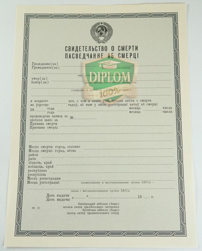 Свидетельство о смерти СССР