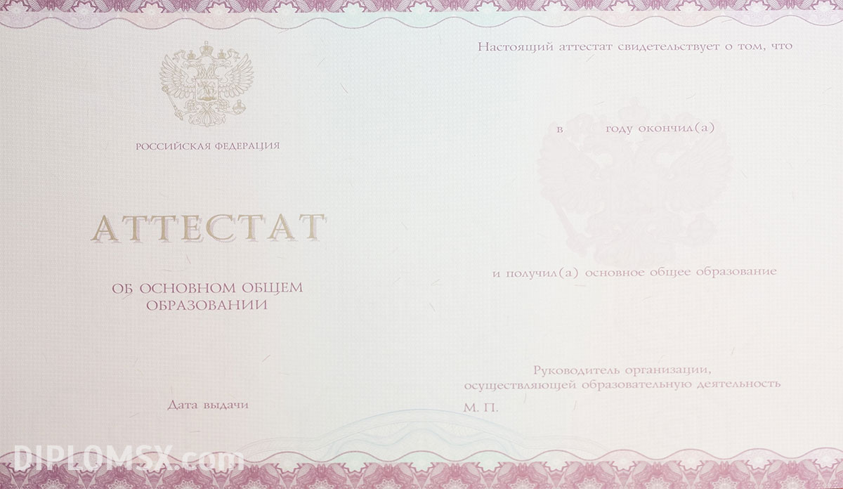 Аттестат о среднем образовании за 9 класс
